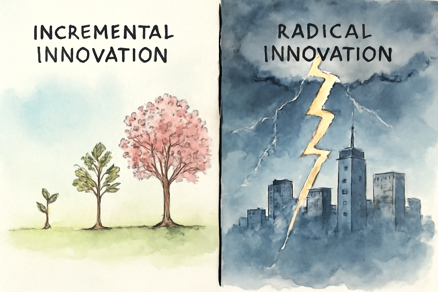 Explore the fundamental differences between incremental and radical innovation strategies in business management. Incremental innovation focuses on continuous improvements to existing products and processes, promoting efficiency and competitiveness with low risk. Radical innovation involves breakthrough developments that disrupt or create markets, offering high reward potential but with higher risk. Strategic alignment of these innovation types with business objectives is vital for achieving competitive advantages.